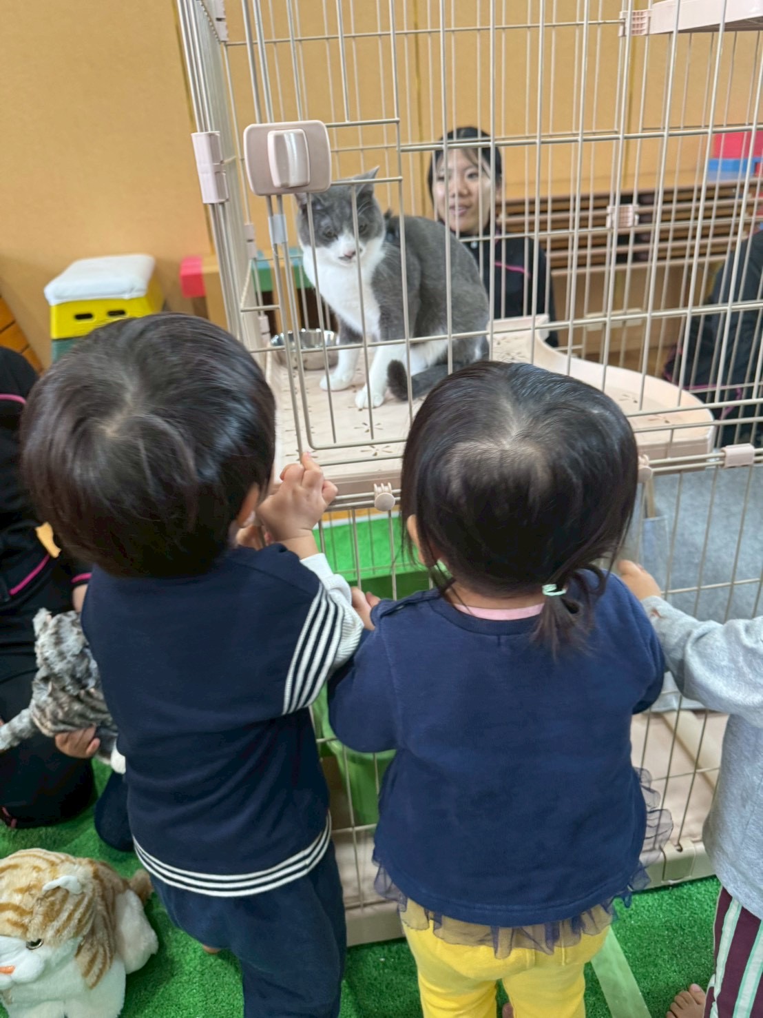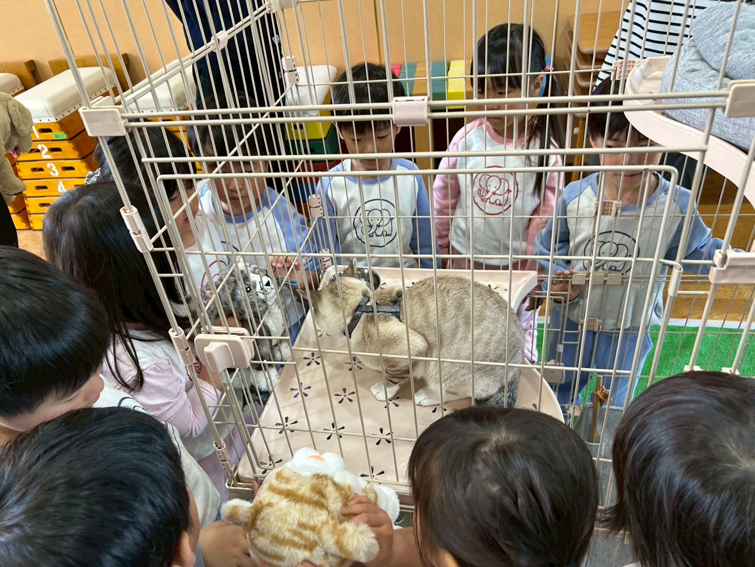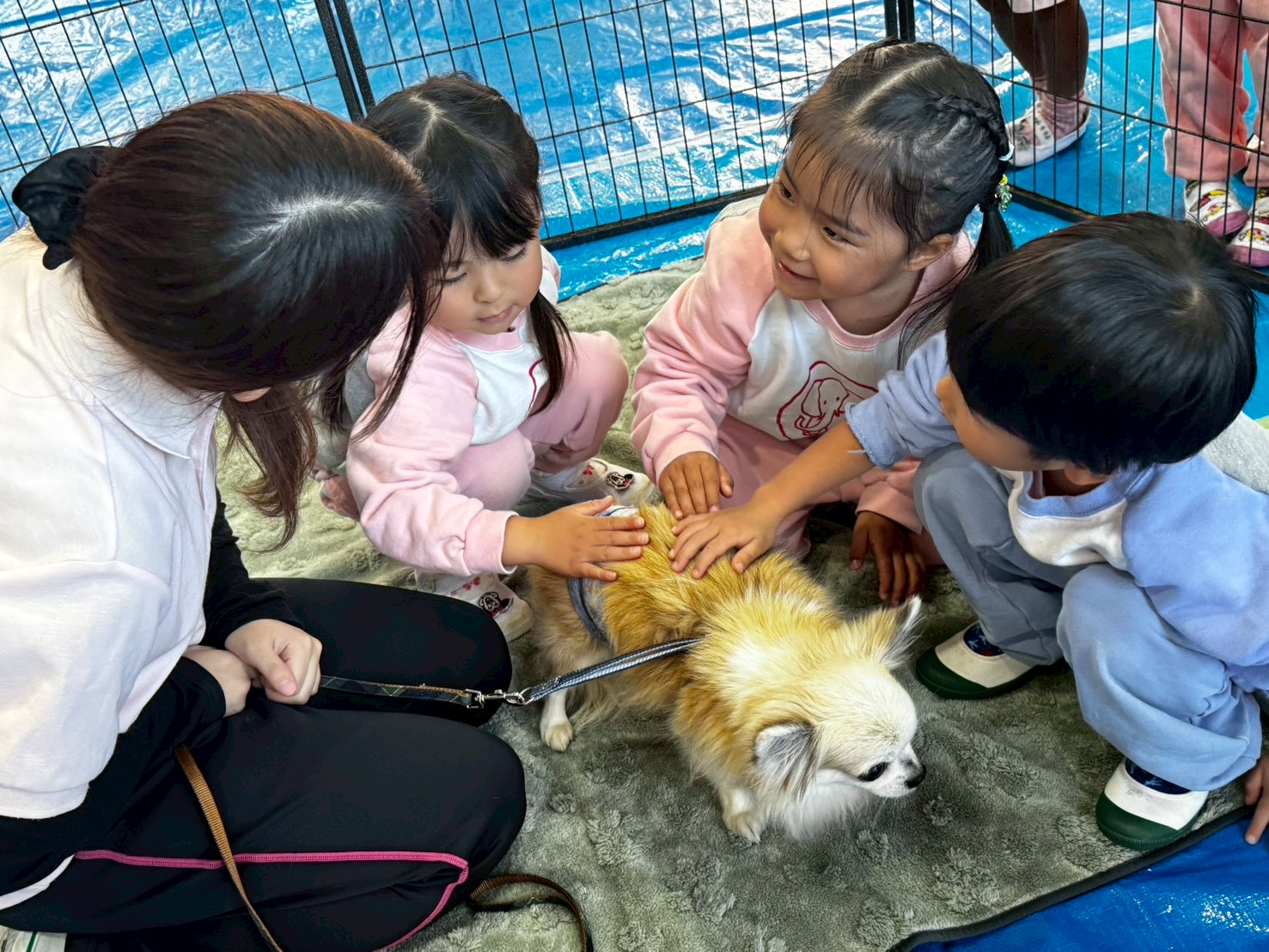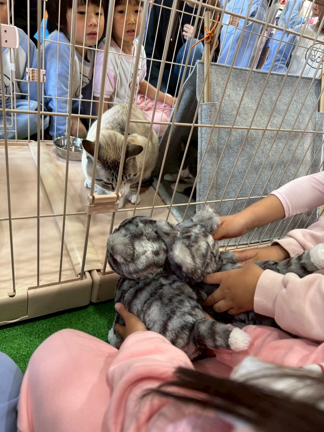 福岡こども短期大学🐕こどもワンヘルス研究会🐈による、「こどもたちのいのちも、どうぶつたちのいのちも大切に育てたい」という教育活動のもと、こども達にわかりやすく「ワンヘルス」について教えていただき、犬(わんちゃん)、猫(ねこちゃん)と触れ合いました🐈⬛🐶